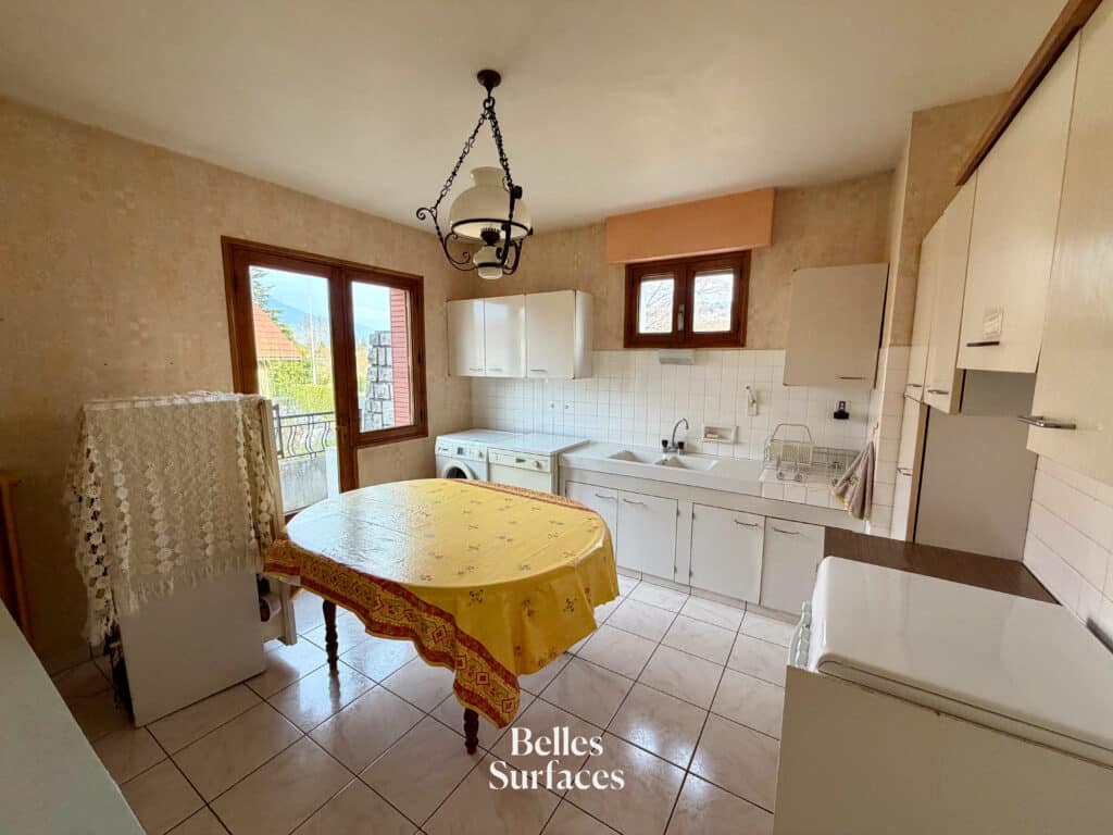 Belles Surfaces vous propose cette maison des années 60 de 114 m2 habitables, implantée sur une belle parcelle de 700 m2 avec vue sur les montagnes, à seulement quelques minutes du lac.