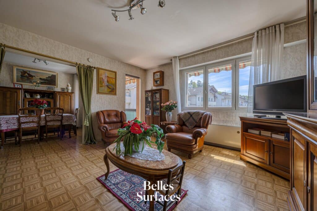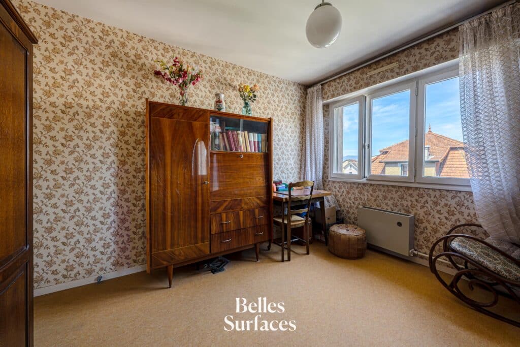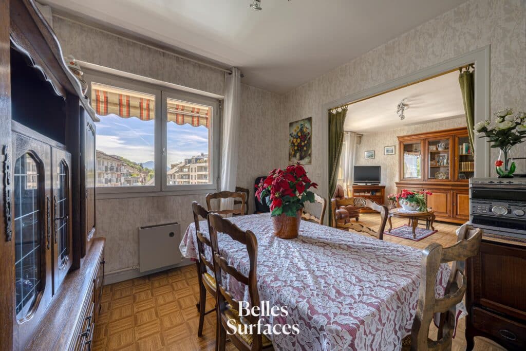 Idéalement situé à quelques pas du cœur de ville, de la rue de Chambéry, de la gare et de son parc arboré, cet appartement familial spacieux se niche au dernier étage d’une résidence sécurisée des années 80 avec ascenseur.