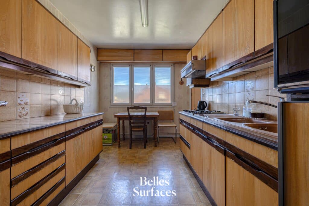 Appartement « de première main », il a été conservé dans un état d’origine irréprochable. S’il nécessite aujourd’hui un rafraîchissement esthétique pour répondre aux codes contemporains (voir notre proposition d’aménagement 3D non contractuelle), il possède une conception architecturale redoutablement fonctionnelle et ne nécessite aucun gros œuvre pour révéler tout son potentiel.