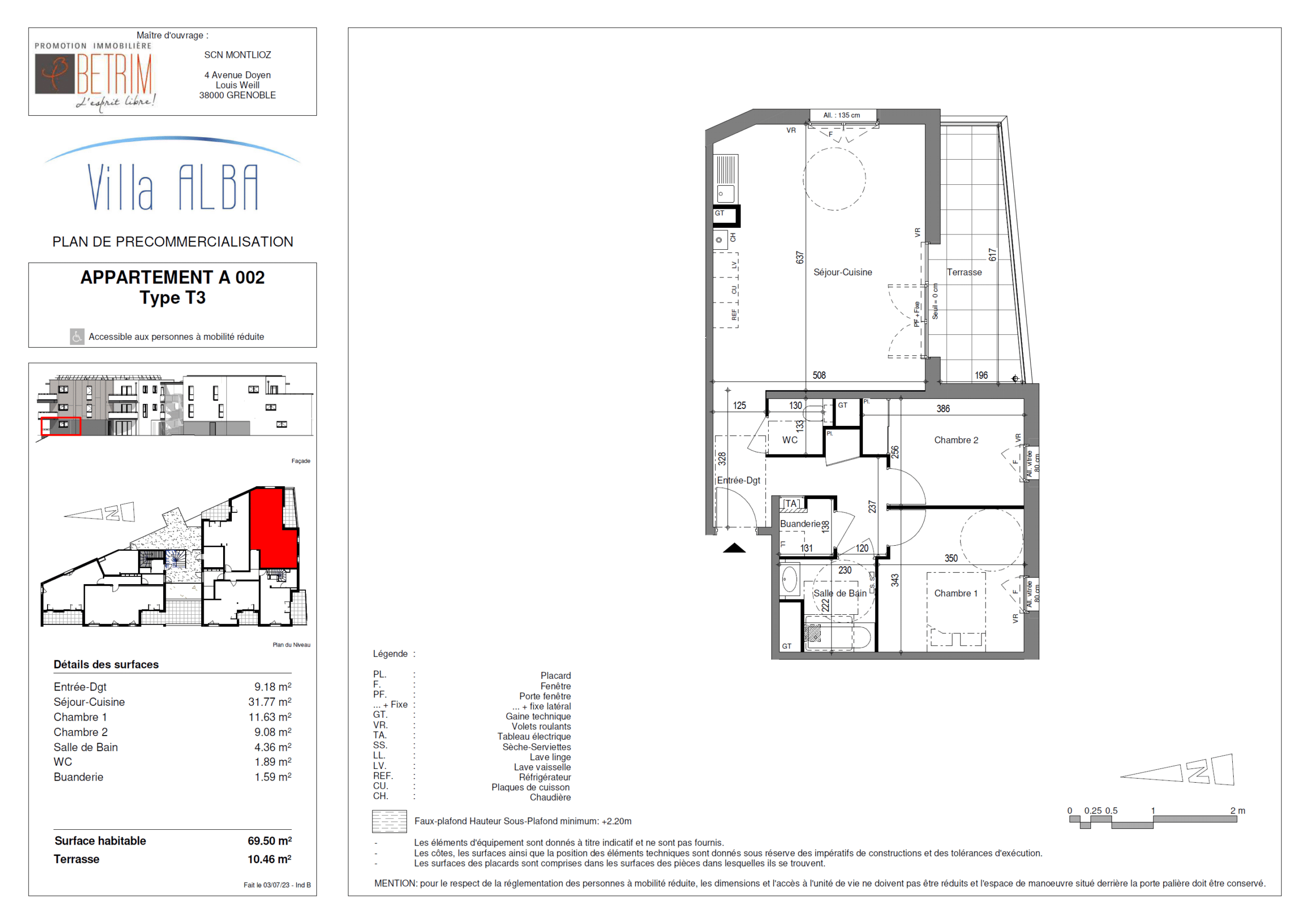 Appartement T3 – RDC – 69,50 m² – 350.000 € – Villa Alba (Aix-les-Bains)