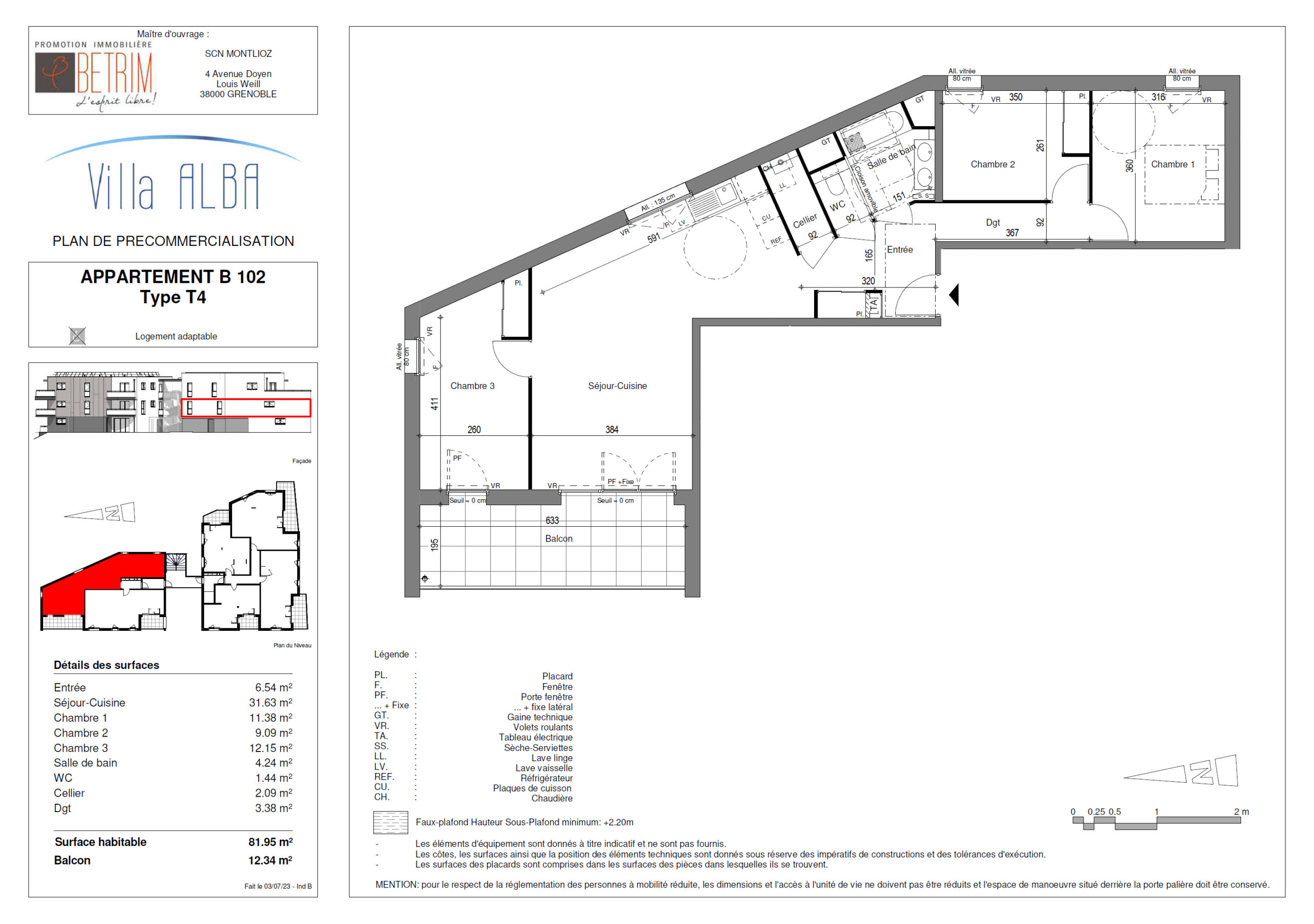 Appartement T4 – 1er étage – 81,95 m² – 432.000 € – Villa Alba (Aix-les-Bains)